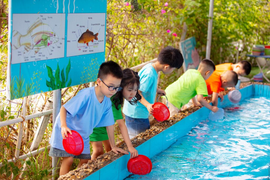 Hoạt động trải nghiệm học mà chơi mang đến cho du khách không gian vừa học, vừa chơi đầy màu sắc. Tại đây, du khách sẽ được trải nghiệm trồng cà rốt, rau mầm hoặc trồng nấm. Không chỉ vậy, du khách còn được khám phá nét đẹp dân gian qua các chú “tò he” tinh xảo và trò chơi truyền thống như ô ăn quan, đẩy gậy, chong chóng giấy, làm thiệp noel, cây thông… Bên cạnh đó, du khách còn được tìm hiểu các loài cá dưới nước và trải nghiệm vợt cá suối hay hòa mình vào những trò chơi như đánh golf, bắn nỏ, trượt cỏ, nhà bóng, xếp hình Lego, Zipline…
